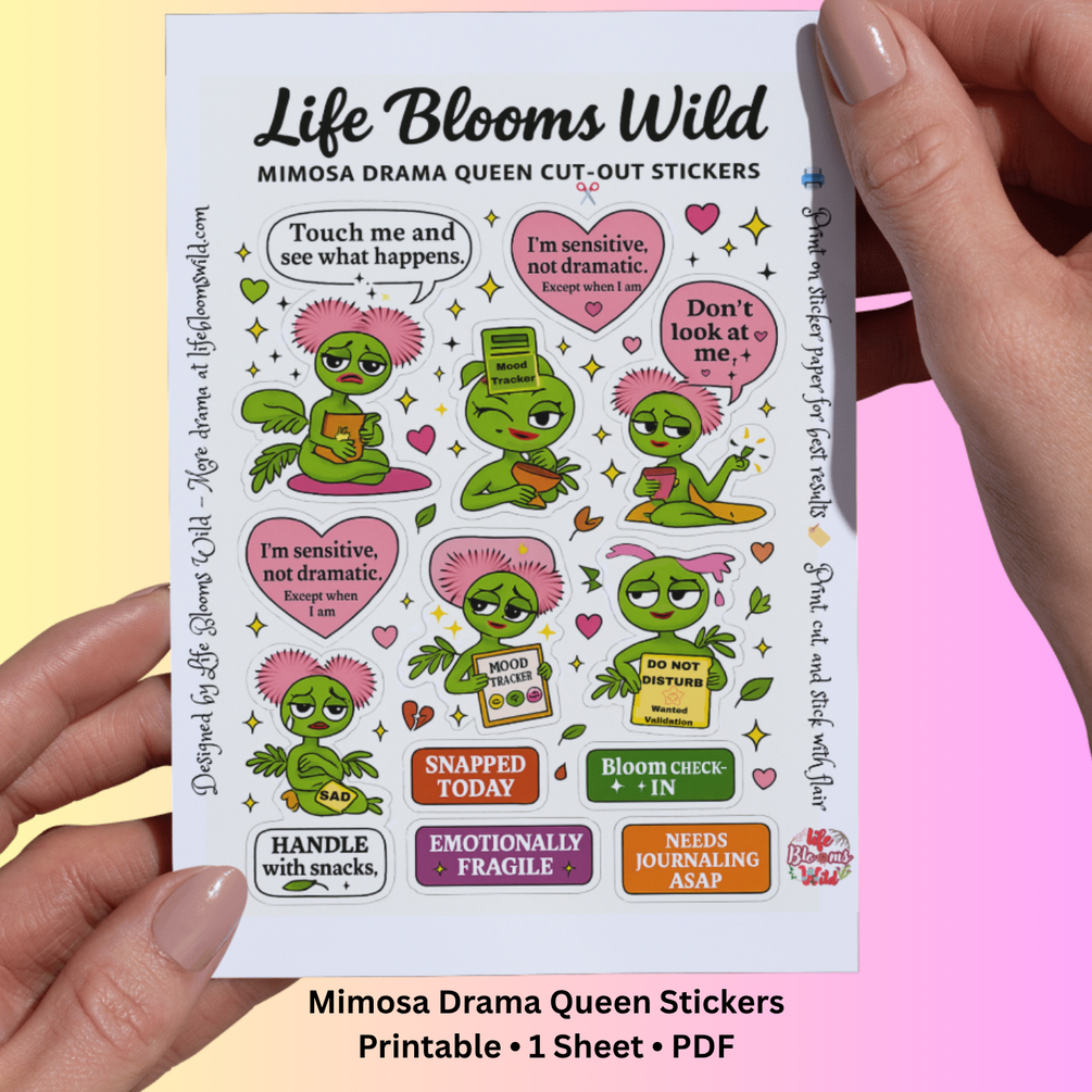 Mimosa: Drama Queen Sticker Sheet 🌿🩷 Stick your feelings. Snap with flair.
